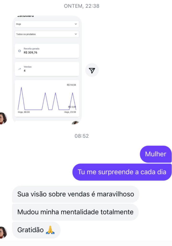 • Resultados apresentados por alunos são reais, porém individuais — variam conforme dedicação, estratégia, execução e contexto; não constituem promessa nem garantia de ganhos, faturamento ou qualquer resultado específico.